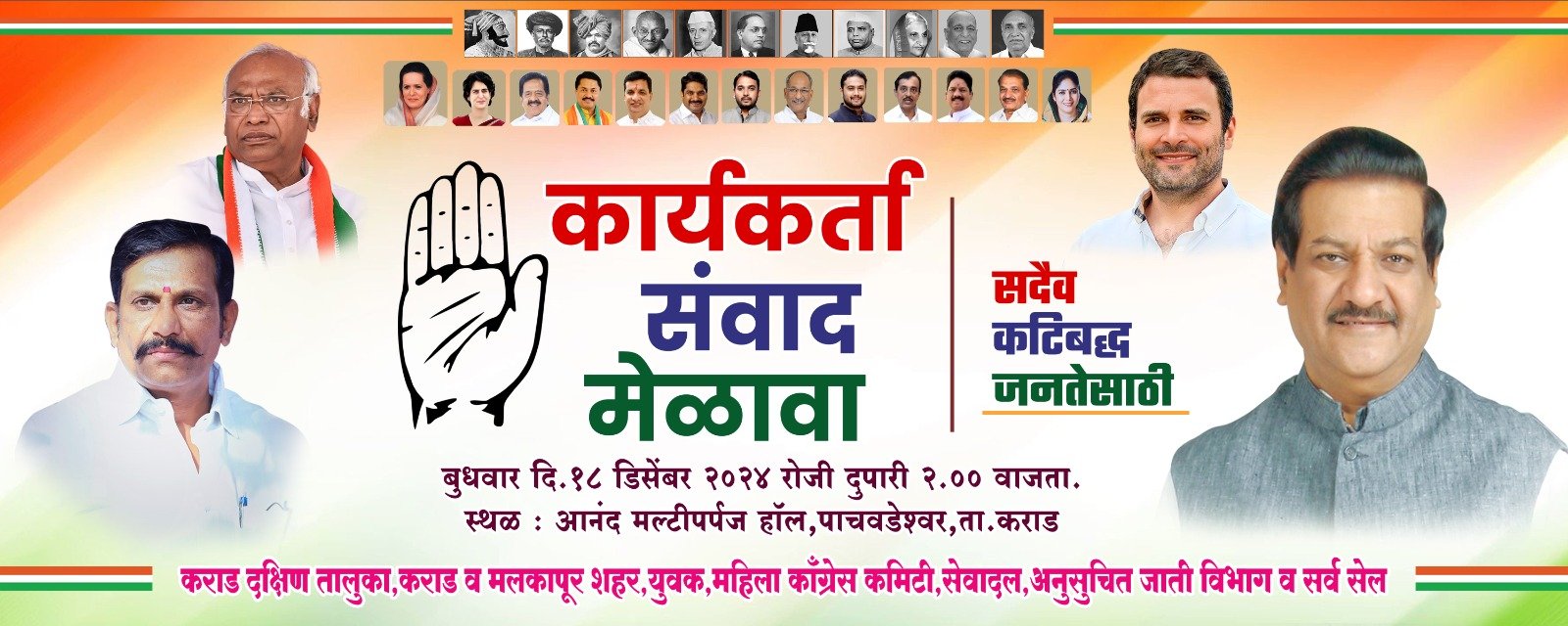 नुकत्याच पार पडलेल्या विधानसभा निवडणुकीनंतर कराड दक्षिण मधील काँग्रेस कार्यकर्त्यांशी संवाद साधण्यासाठी १८ डिसेंबर २०२४ रोजी "कार्यकर्ता संवाद मेळावा" आयोजित करण्यात आला असून या मेळाव्यास माजी मुख्यमंत्री पृथ्वीराज चव्हाण (बाबा) तसेच महाराष्ट्र प्रदेश काँग्रेस कमिटीचे सरचिटणीस उदयसिंह पाटील संवाद साधणार आहेत.