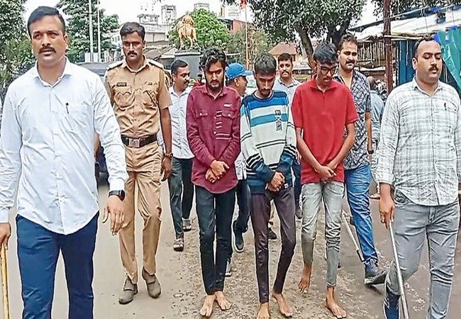 दोन दिवसांपूर्वी मध्यरात्री येथील कोल्हापूर नाक्यावर महामार्गावरील ट्रक अडवून त्यांच्याशी हुज्जत घालत त्यावर दगडफेक करत दहशत माजविणाऱ्या तिघांना शहर पोलिसांच्या डीबी पथकाने काल रात्री अटक केली.