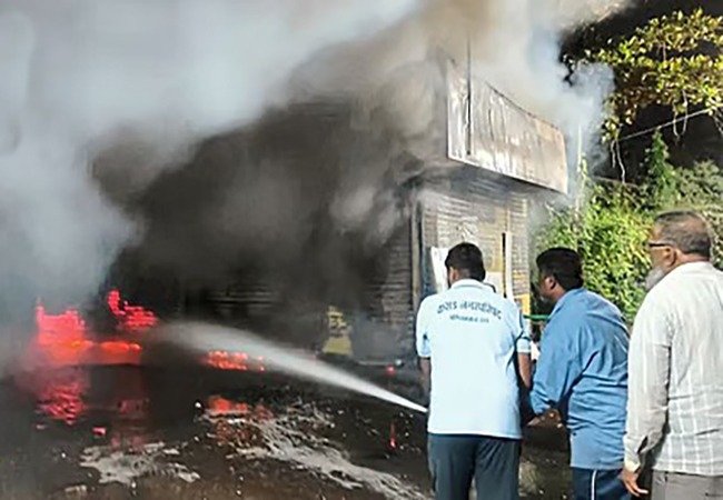 कराड येथील विजय दिवस चौक परिसरातील एका किराणामालाच्या दुकानाला सोमवारी रात्री दीडच्या सुमारास भीषण आग लागून सुमारे २० लाखांचे नुकसान झाले.