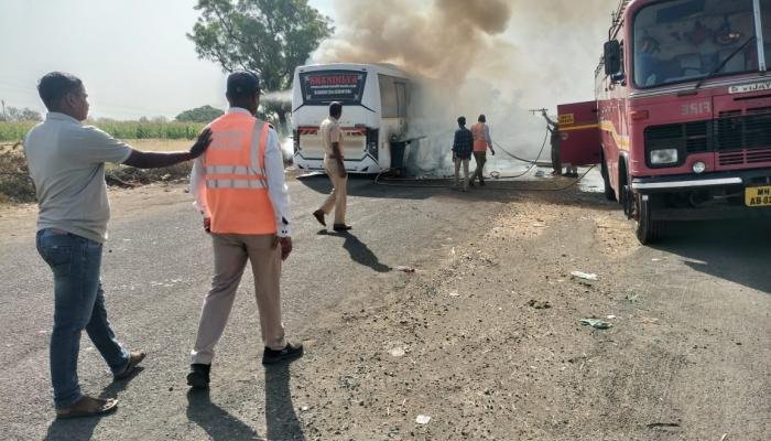 पुणे-बेंगलोर राष्ट्रीय महामार्गावरून निघालेल्या मुंबईतील विद्यार्थ्यांच्या लक्झरी बसला आनेवाडी टोलनाक्याजवळ भीषण आग लागल्याची घटना आज सकाळी नऊ वाजण्याच्या सुमारास घडली.