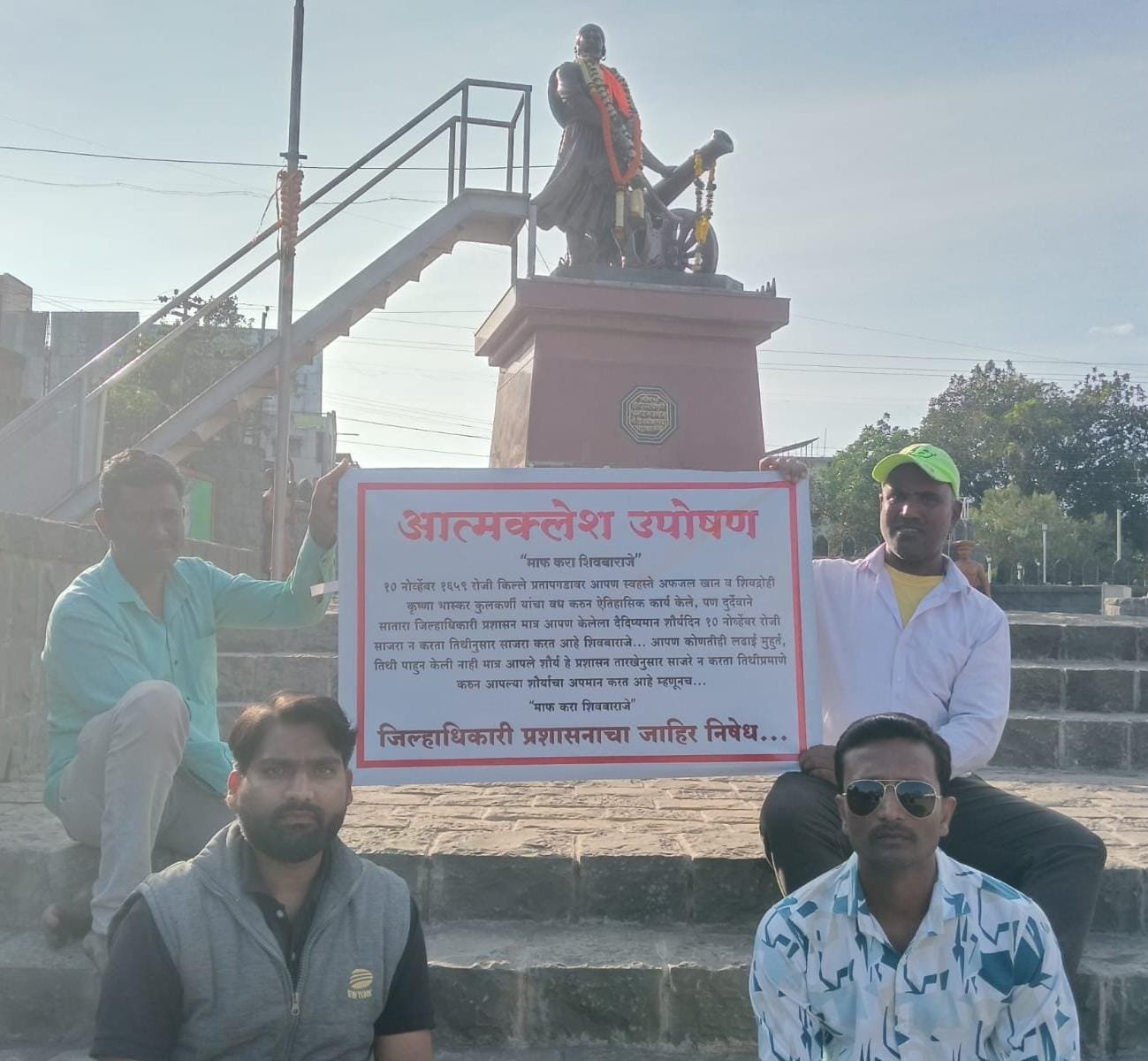 शिवप्रताप दिन तिथीवर साजरा करणाऱ्या जिल्हा प्रशासनाचा शिवभक्तांनी शिवतीर्थावर रविवारी शिवभक्तांनी आत्मक्लेश आंदोलन केले. या आंदोलनाचे पोस्टर छत्रपती शिवरायांच्या पुतळा परिसरात झळकविण्यात आले.