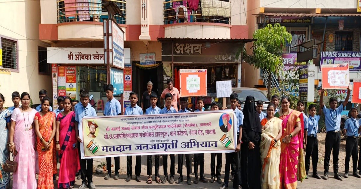 महाराष्ट्र शासनाने डॉ. बाबासाहेब आंबेडकर दलितमित्र व कर्मवीर दादासाहेब गायकवाड समाजभूषण पुरस्कार प्रदान करून गौरवलेल्या तसेच पश्चिम महाराष्ट्रामध्ये शैक्षणिक-सामाजिक कार्यात अग्रेसर असणार्या श्री जानाई मळाई शिक्षण संस्थेच्या कै. सौ. कलावती माने बालविकास केंद्र, समाजभूषण दलितमित्र शिवराम माने विद्यामंदिर, श्री. छ. प्रतापसिंहमहाराज राजेभोसले हायस्कूल, माने कॉलनी सातारा या शैक्षणिक संकुलाच्या वतीने स्वीप कार्यक्रमांतर्गत मतदान जनजागृती करण्यात आली.