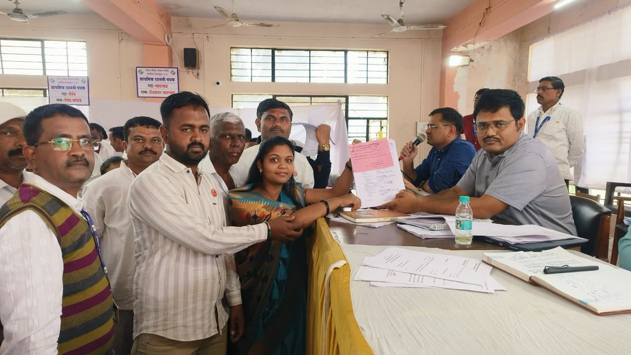 सातारा जिल्हा परिषद पाटखळ गटातून रयत क्रांती संघटनेचे युवक जिल्हाध्यक्ष प्रकाश उर्फ सोनू साबळे यांच्या पत्नी संजना प्रकाश साबळे यांनी रयत क्रांती पक्षाच्यावतीने निवडणूक नामनिर्देशन पत्र आज मोठे शक्तिप्रदर्शन करत दाखल करण्यात आला.