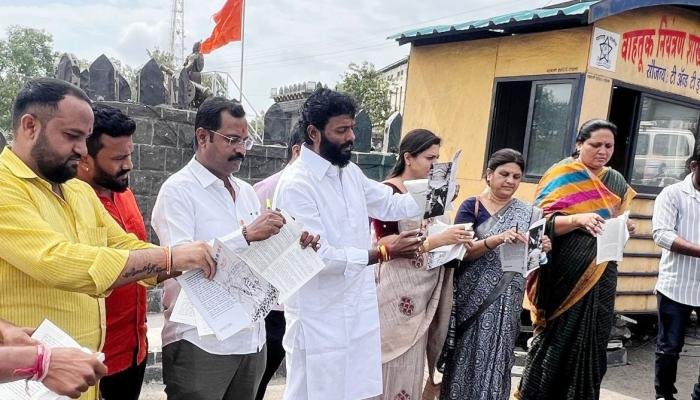 शिवसेना उद्धव ठाकरे गटाचे खासदार संजय राऊत यांच्या नरकातील स्वर्ग या पुस्तकाचे शिंदे शिवसेना गटाच्या वतीने दहन करण्यात आले.
